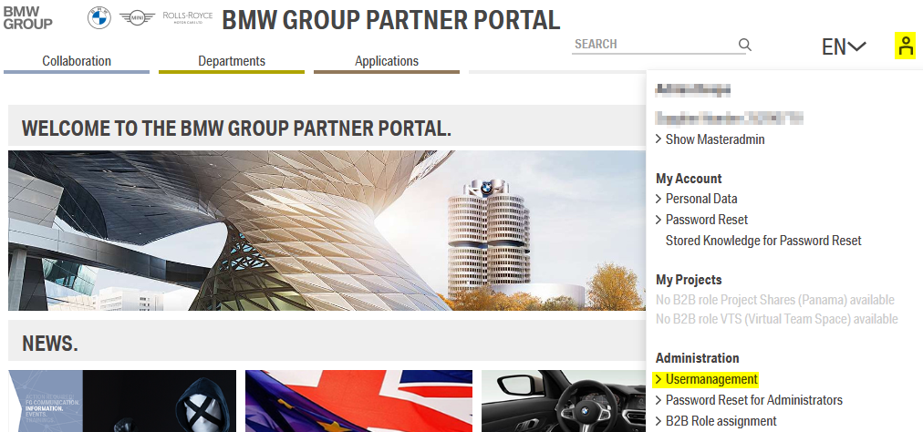 Jelentkezz be a B2B Portálra: https://b2b.bmw.com