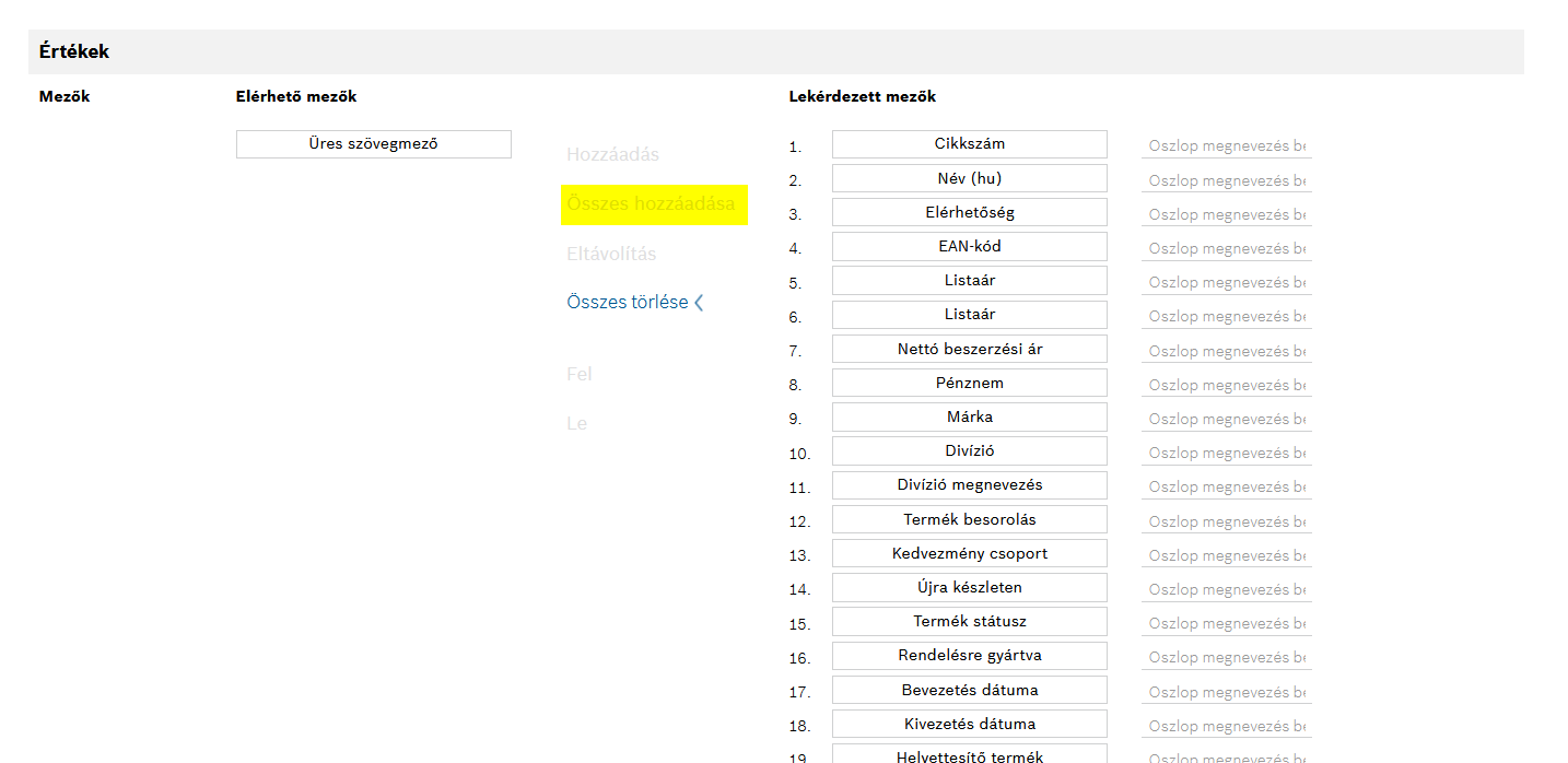 Értékeknél válasszuk ki az Összes hozzáadása opciót: