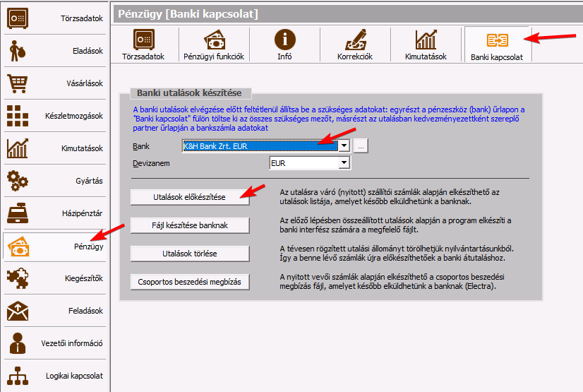 Az átutalásra kívánt tételek elkészítése, válasszuk ki melyik bankba milyen pénznemben szeretnénk az utalást elvégezni: